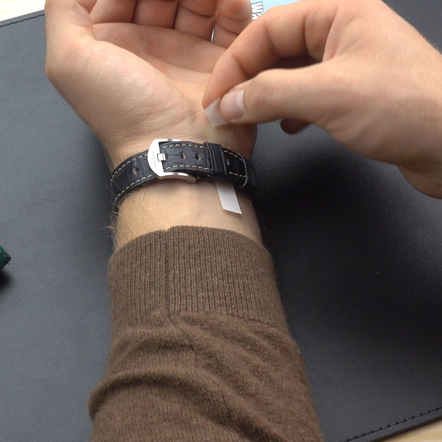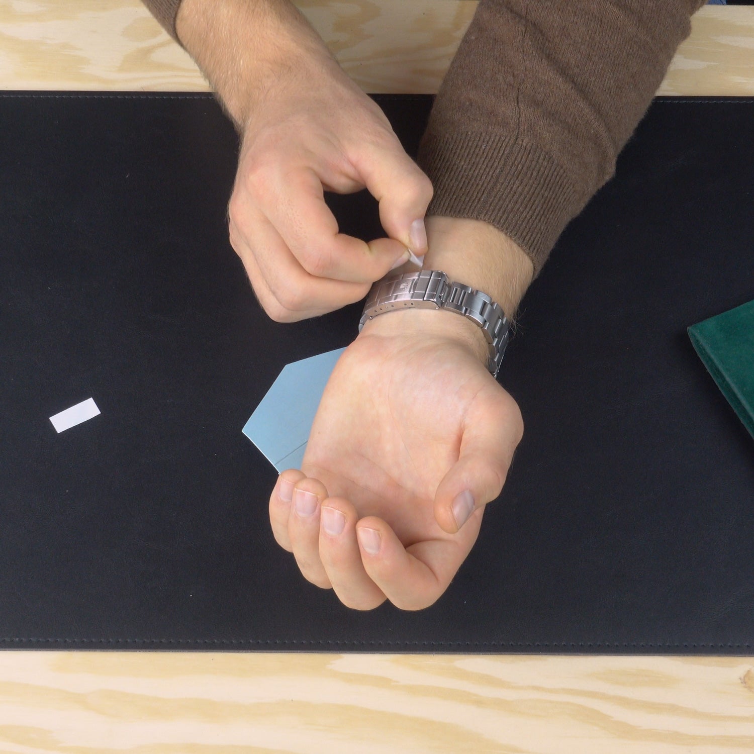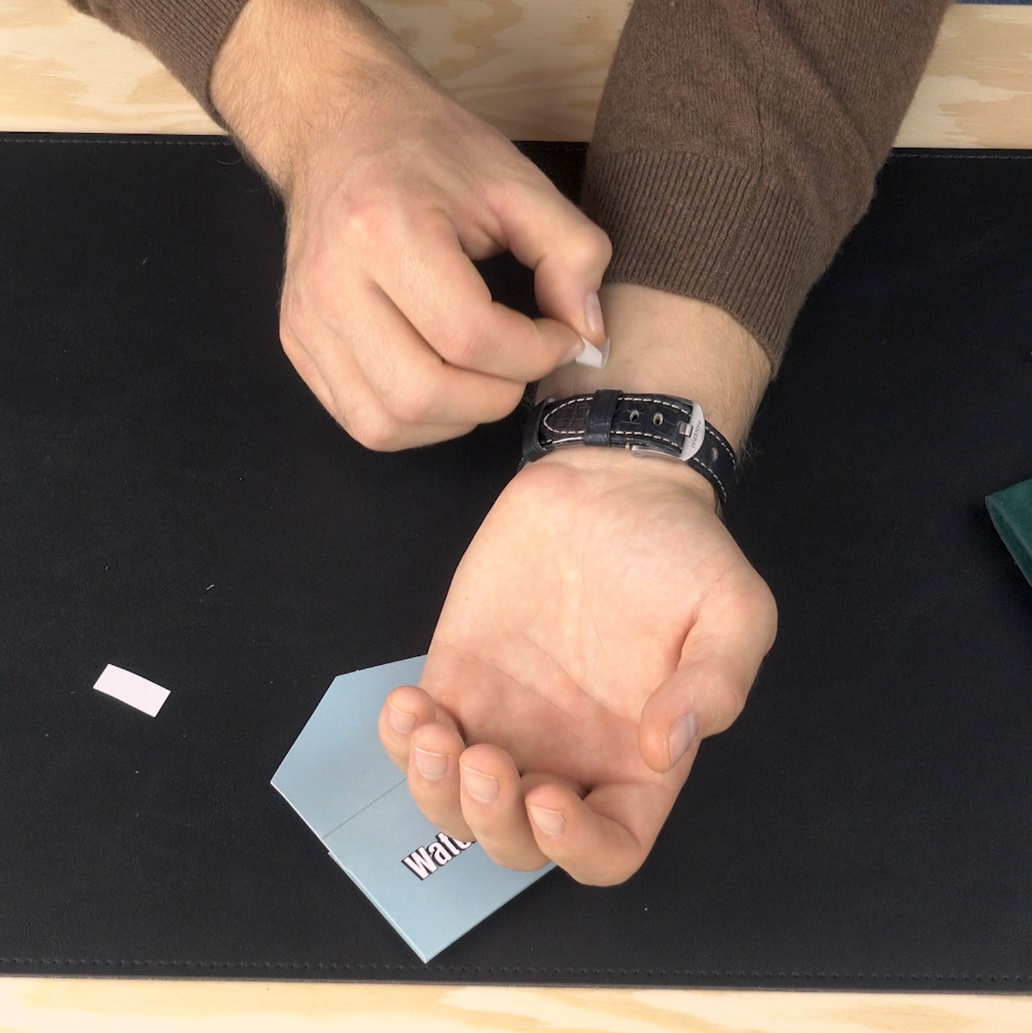 Place it under your watch clasp with the removable parts facing away from your wrist.